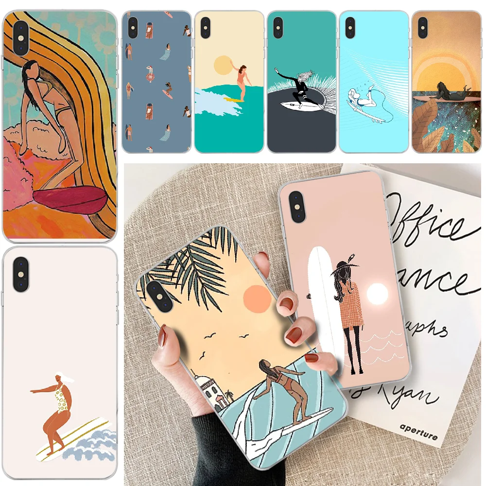 Surfboard Surfing Art Surf Girl Phone Case Cover For Iphone 6 6s Plus 7 8 Plus X Xs Xr Xs Max 11 11 Pro 11 Pro Max Cover Half Wrapped Cases Aliexpress